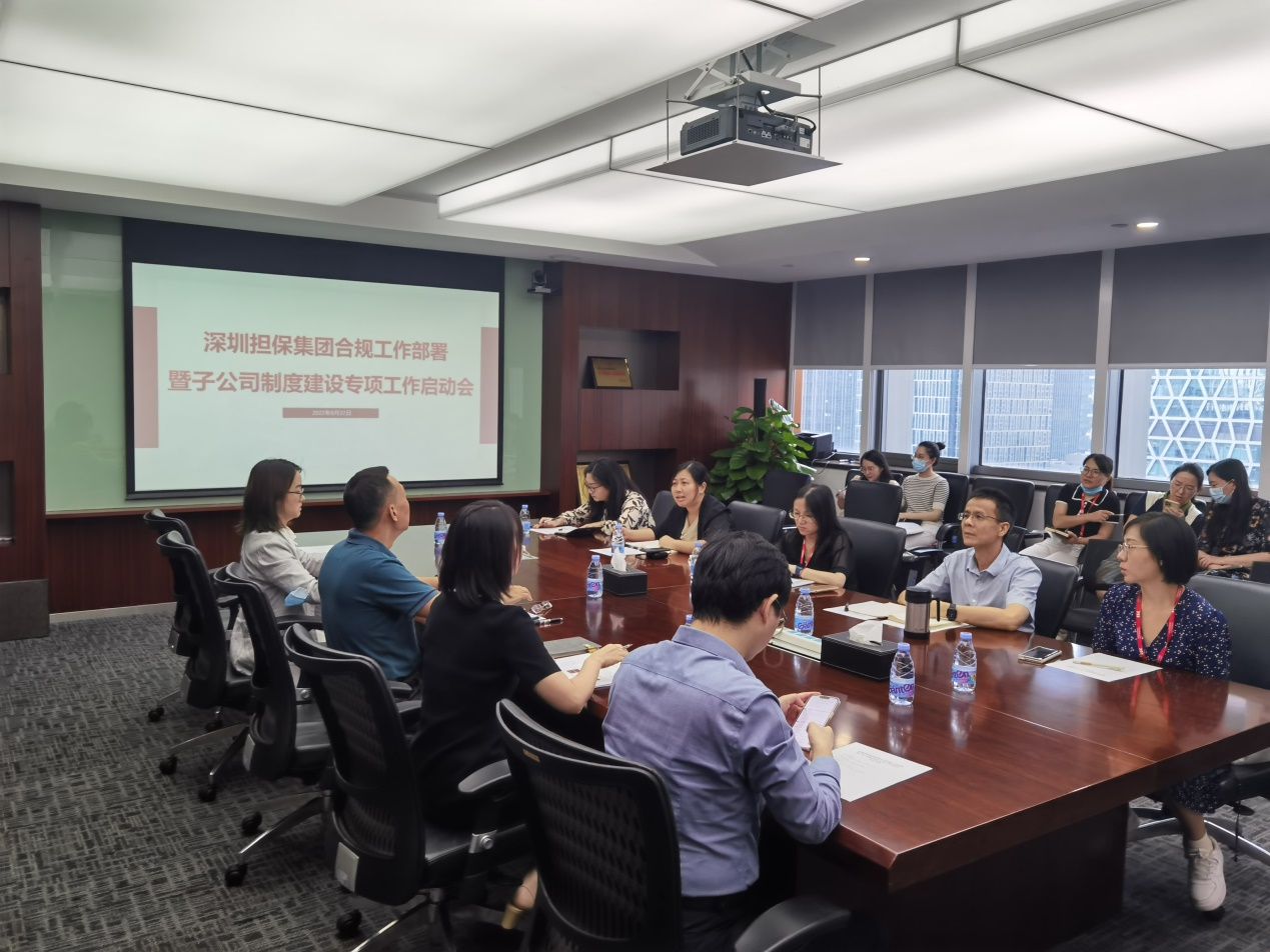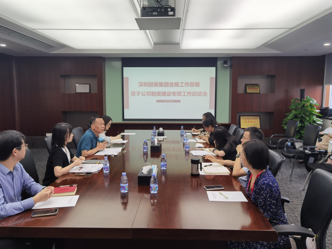 2022年8月22日,深圳担保集团有限公司在集团18楼2号会议室召开合规工作部署暨子公司制度建设专项工作启动会,集团副总经理蔡涛主持会议,集团董事会办公室、风险管理部以及子公司班子成员、相关部门负责同志参加会议。