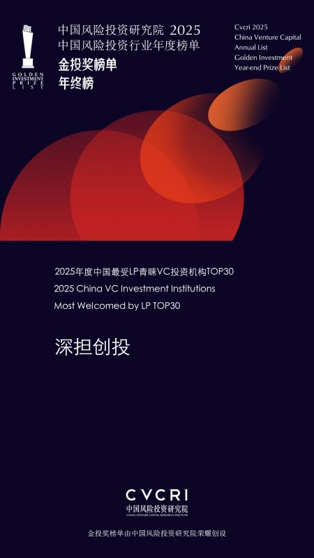 近日,中国风险投资研究院正式揭晓“2025中国风险投资行业年度榜单·金投奖榜单·年终榜”。深担创投凭借在基金募资领域的优异表现,成功上榜“2025年度最受LP青睐VC投资机构TOP30”。